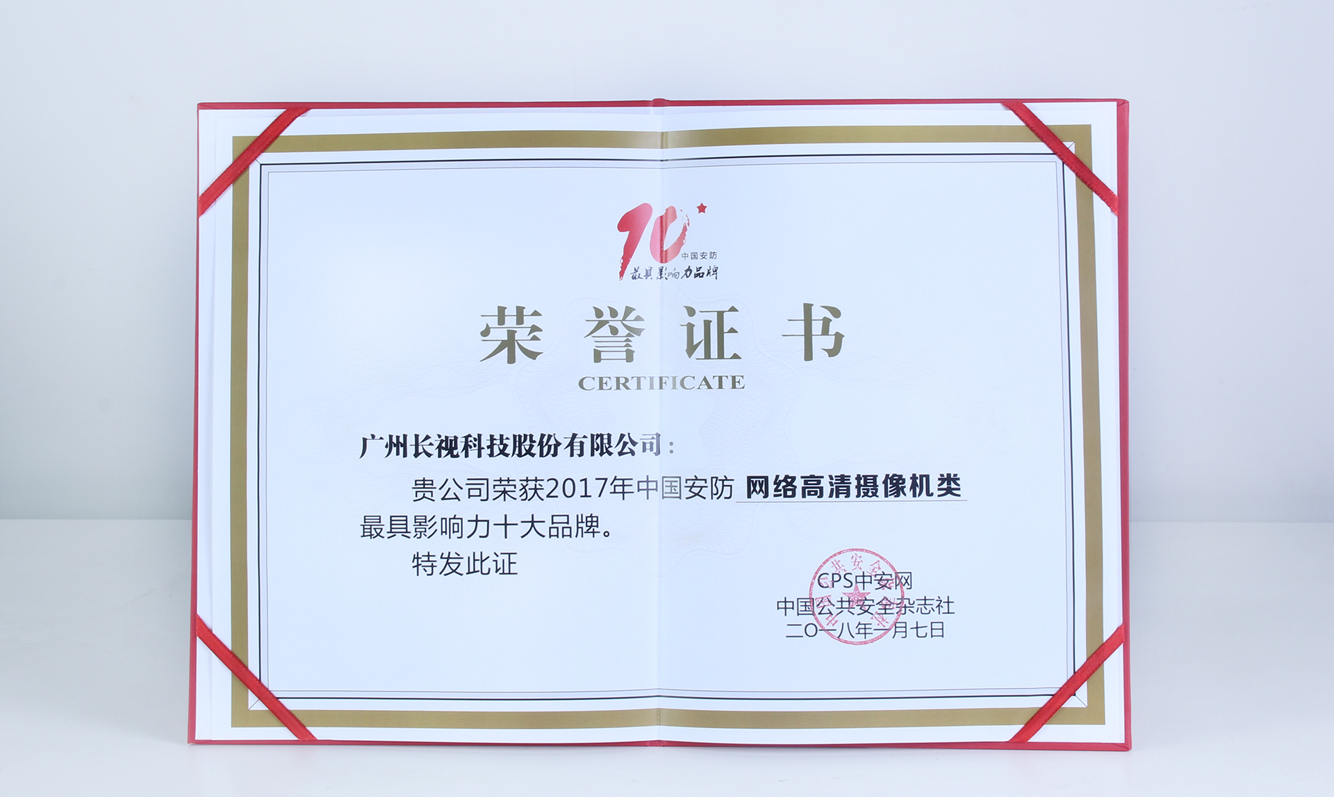 庆祝长视科技荣获《2017年中国安防十大最具影响力品牌》Date: 2018-01-12