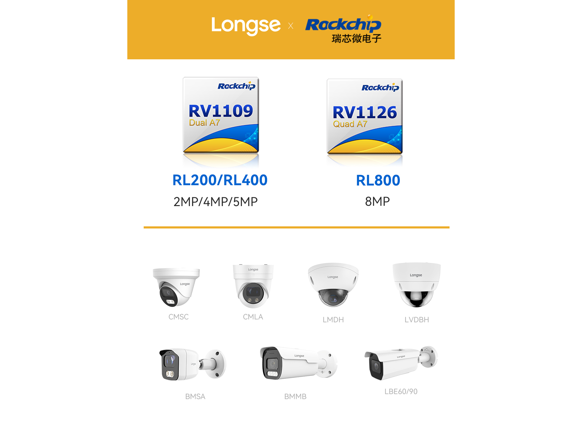 长视科技结合瑞芯微推出RV1126/RV1109智能AI摄像头,产物线涵盖200万/400万/800万的定焦及变焦IPC。