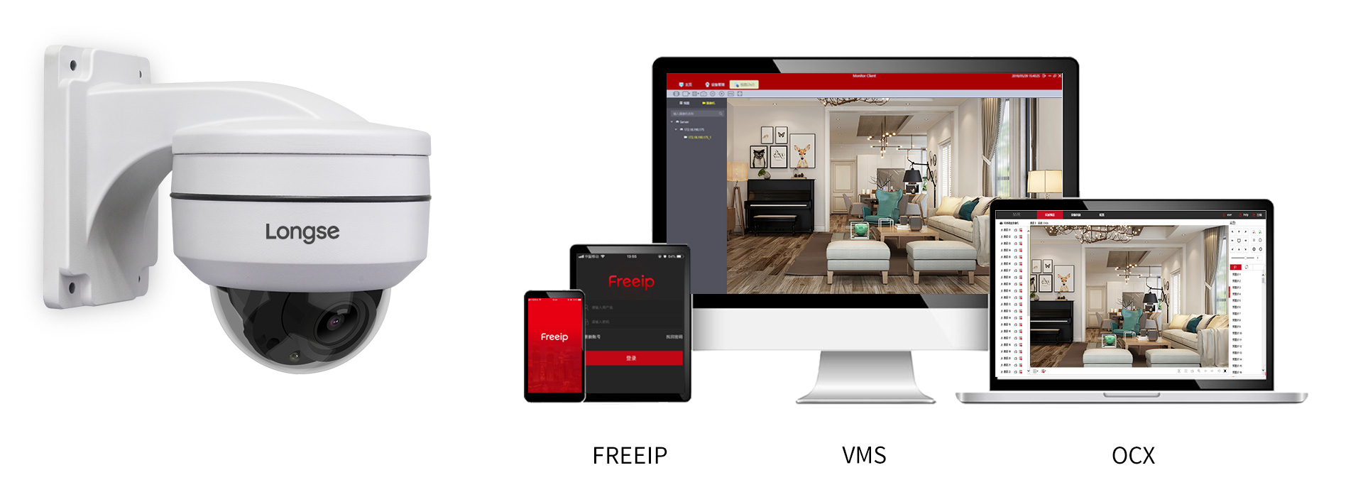 努力于使监控任务加倍方便,长视自力研发的OCX\VMS\FREEIP的长途办理平台,